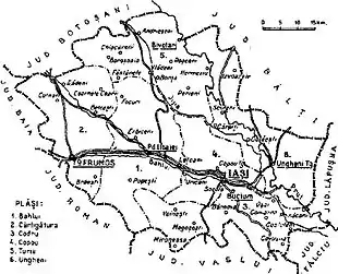 - Plasa Codru, headquartered at Buciumii (at that time a commune, now Bucium District in the city of Iași)[9]