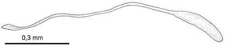 The larva lives it in its first instars as an endoparasite, and later exits the host and lives on the remaining host tissues. The primary instar is polypodeiform with paired appendages on segments 1–12, and in the second to fourth instars, the appendages are lost. Until the terminal instar, the remaining cauda is gradually decreased.[4]