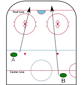 - A player shoots the puck over the center red line and his team's red line.
