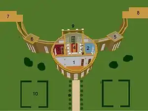 Unlike the design of a true Palladian building, the terminating pavilions, rather than minor balancing appendages, are in fact large wings, complementary in weight to the rotunda which becomes their corps de logis. The East Wing, a small mansion in itself, was designed to be the everyday living quarters of the family (which it remained until 1998), thus permitting the more formal rooms of the rotunda to be reserved for entertaining and display. The west wing, intended as an orangery, sculpture gallery and service rooms remained an unfinished shell until the beginning of the 21st century. For much of the time it was used as agricultural storage.