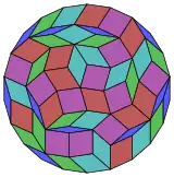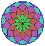 Coxeter states that every zonogon (a 2m-gon whose opposite sides are parallel and of equal length) can be dissected into m(m-1)/2 parallelograms. In particular this is true for regular polygons with evenly many sides, in which case the parallelograms are all rhombi. For the regular icosidigon, m=11, and it can be divided into 55: 5 sets of 11 rhombs. This decomposition is based on a Petrie polygon projection of a 11-cube.[2]