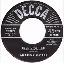 "Idle Chatter" is a popular song written by Al Sherman and recorded by the Andrews Sisters with the Nelson Riddle Orchestra. The music is adapted from the popular 19th-century ballet, Dance of the Hours by Ponchielli. The song was recorded on May 26, 1952, and released later that year.