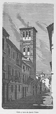 The Iglesia de Santo Tomé is a church located in the historical center of the city of Toledo (Spain), and was founded after the reconquest of this city by King Alfonso VI of León.[1] It appears quoted in the 12th century, as constructed on the site of an old mosque of the 11th century.[2] This mosque, together with other mosques in the city, were used as Christian churches without major changes, since in the taking of the city there was no destruction of buildings.