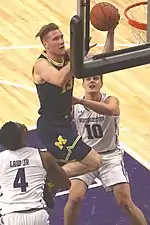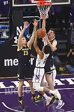 Brazdeikis and Jon Teske on defense against the 2018–19 Northwestern Wildcats