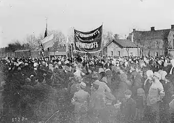 Soon after being admitted into the garrison, Cătărău became known for propagating communist- and anarchist-inspired messages, such as: "All things belong to the people, the boyars must be killed"; "All things are yours, take hold of them while you still can, before it's too late."[26] Profiting from the breakdown of traditional rank structure, and receiving backing from the military soviet, he was voted head of the Moldavian 1st Regiment, garrisoned in Chișinău.[9][26] Ciobanu, who describes Cătărău as "an overt partisan of anarchy", notes that, for the Chișinău committees which endorsed this appointment, "the social element took precedence over the national one."[29]
