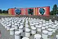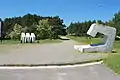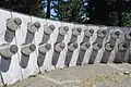 The monument's grounds cover 5 hectares (12 acres). The building has a rounded shape with protruding oval windows. The upper windows are made of stained glass.