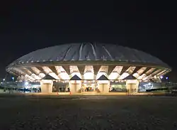 During the 1957–58 season, Mannie Jackson and Govoner Vaughn were inserted into the starting lineup as the first two African-Americans to start and letter in basketball at Illinois.[3] Combes also oversaw the Illini's move from Huff Hall to Assembly Hall in 1963 and during that same season the Illini won a fourth Big Ten Conference championship under Combes. However, the Illini lost to eventual national champion Loyola (Chicago) in the Elite Eight of the 1963 NCAA Men's Division I Basketball Tournament. The following 1964–65 season, saw several upset victories over defending national champion UCLA Bruins and national powerhouse Kentucky Wildcats at Memorial Coliseum in Lexington, Kentucky.[2]