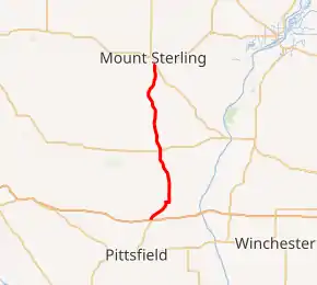 Illinois Route 107 is a north–south state highway in western Illinois. It runs from the northern terminus of U.S. Route 54 between Pittsfield and Griggsville north to Illinois Route 99 in Mt. Sterling. This is a distance of 23.14 miles (37.24 km).[1]
