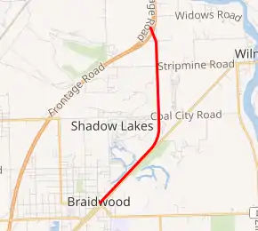 The entire route is in Braidwood, Will County.