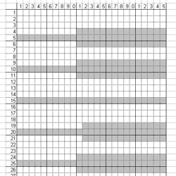 - Row 1-4 (WS): Purl the blank boxes, knit the ones filled in.