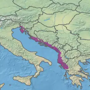 | Borders | Aegean and Western Turkey sclerophyllous and mixed forests, Dinaric Mountains mixed forests, Pindus Mountains mixed forests and Po Basin mixed forests |