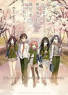 Ima Sugu Oniichan ni Imōto da tte Iitai! (いますぐお兄ちゃんに妹だっていいたい!, lit. I Want to Say to my Older Brother That I'm His Younger Sister Now!), also known as Imaimo (いま妹) for short, with the tagline "I wanna say that I'm not your brother right now!", is a Japanese visual novel developed by Fairys, a sister brand of Sprite, the creators of Love, Elections & Chocolate. It was released on December 14, 2012 playable on Windows PCs and is rated all ages. The game takes place before the events of Love, Elections & Chocolate, and features two of the heroines from that game: Chisato Sumiyoshi and Satsuki Shinonome. The story revolves around the protagonist Rikuto Mitani, whose father remarried a woman who already has a daughter. There is a manga adaptation of the game published in Dengeki Daioh.[1][2] Imaimo and Love, Elections & Chocolate were both featured at the 2012 Anime Contents Expo.[3] A PlayStation Vita version will be released in Japan on 24 April 2014.[4]