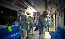 On January 24, 2020, the day after the lockdown was declared in the city of Wuhan, the Beijing Subway began testing body temperature of passengers at the entry points of 55 subway stations including the three main railway stations and the capital airport.[8] Temperature checks were expanded to all subway stations by January 27.[9] To further control the spread of the virus, certain Line 6 trains were outfitted with smart surveillance cameras that can detect passengers who are not wearing masks.[10]
