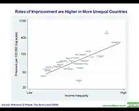 Sometimes gender imbalances occur in imprisonment rates, with incarceration of males proportionately more likely than incarceration of females. Ethnic minorities can also contribute disproportionate numbers to prison populations.[6]