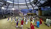 The Pan-gut[19] of Imsil Pilbong nongak is divided into the front and back part.[15] The first part consists of music of starting gut,[19] gilgut,[20] chae-gut,[21] hohu-gut,[22] pungryu-gut.[23] The back part consists of three-'bangowljin,[24] misigi-youngsan,[25] gajin-youngsan,[26] chum-gut (dol-gut),[27] subakchigi,[28] etc.[15]
