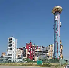 The Maishima waste treatment center in Osaka, designed by Friedensreich Hundertwasser, uses heat for power generation. - Incineration of municipal solid waste avoids the release of methane. Every ton of MSW incinerated, prevents about one ton of carbon dioxide equivalents from being released to the atmosphere.[22]