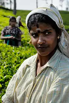 ![]() Hill Country Tamil woman working in a tea plantation in central Sri Lanka | |