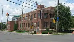 The Indiana Oxygen Company Building is a historic industrial building located at Indianapolis, Indiana. It was built in 1930, and consists of a two-story, rectangular main building on a raised basement, with an attached one-story, "U"-shaped warehouse. Both building are constructed of brick. The main building features applied Art Deco style limestone and metal decoration.[2]:2–3