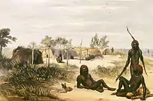 Stone engineering was utilised by a number of Indigenous language groups.[2] Examples of Aboriginal stone structures come from Western Victoria's Gunditjmara peoples.[3][4][5] These builders utilised basalt rocks around Lake Condah to erect housing and complicated systems of stone weirs, fish and eel traps and gates in water courses creeks. The lava-stone homes had circular stone walls over a metre high and topped with a dome roof made of earth or sod cladding. Evidence of sophisticated stone engineering has been found in other parts of Australia. As late as 1894, a group of around 500 people still lived in houses near Bessibelle that were constructed out of stone with sod cladding on a timber-framed dome. Nineteenth-century observers also reported flat slab slate-type stone housing in South Australia's north-east corner. These dome-shaped homes were built on heavy limbs and used clay to fill in the gaps. In New South Wales’ Warringah area, stone shelters were constructed in an elongated egg shape and packed with clay to keep the interior dry.