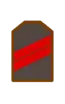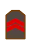 Ceremonial and service uniform are equipped with gorget paches (officially called "Monogram"). Higher officers (Brigadier General above) wear red while the rest wear dark brown.