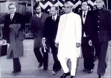 ![]() Dr Singh (Extreme Left) accompanying the then Minister of External Affairs, Shri Atal Bihari Vajpayee and other dignitaries in the capacity of Joint Secretary Pakistan, Iran and Afghanistan. |