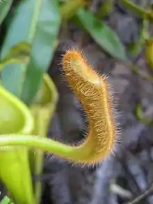 Caducous hairs on a developing pitcher of Nepenthes chaniana