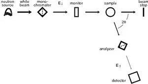Inelastic scattering experiments normally require a monochromatization of the incident or outgoing beam and an energy analysis of the scattered neutrons. This can be done either through time-of-flight techniques (neutron time-of-flight scattering) or through Bragg reflection from single crystals (neutron triple-axis spectroscopy, neutron backscattering). Monochromatization is not needed in echo techniques (neutron spin echo, neutron resonance spin echo), which use the quantum mechanical phase of the neutrons in addition to their amplitudes.