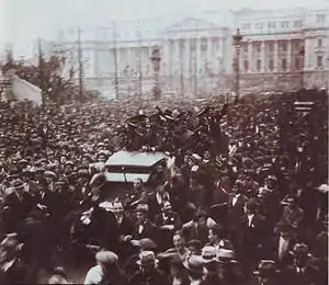 In 1931, a year after the execution of the Italian anarchist Severino Di Giovanni and his comrade Paulino Scarfó--who had implemented a propaganda of the deed campaign aimed both at international support of the Sacco and Vanzetti case and at attacking Fascist Italy's interests in Argentina--three anarchists were given life sentences during a show trial in which they were tortured, on the charges of having assassinated family members of conservative politician José M. Blanch.[2] Known as the "prisoners of Bragado" (presos de Bragado), the case raised international public indignation. Anarchists, who had created a solidarity network with comrades expelled under the 1902 Law on Residency which legalised the expulsion of immigrants who "compromise national security or disturb public order", were considered as public enemies by Uriburu's dictatorship.[2][3] Prior to their execution, three anarchist bombs had detonated at three strategic places on the Buenos Aires railway network on 20 January 1931, killing three and wounding 17.[4]