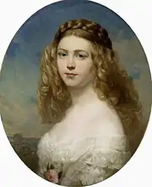 Infanta Amalia of Spain (Spanish: Amalia de Borbón y Borbón-Dos Sicilias; 12 October 1834 – 27 August 1905) was the youngest daughter of Infante Francisco de Paula of Spain. Her eldest brother, Francisco de Asís married Queen Isabella II of Spain, who was Amalia's first cousin. She was the only one of five sisters who made a royal marriage. In 1865 she married Prince Adalbert of Bavaria, a son of King Ludwig I of Bavaria. Upon her marriage she moved to Munich, where she spent the rest of her life. However she remained attached to her native country and was instrumental in arranging the marriage of her eldest son Prince Ludwig Ferdinand of Bavaria with her niece Infanta Paz of Spain.