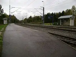Ingå railway station (Swedish: Ingå järnvägsstation, Finnish: Inkoon rautatieasema) was a railway station in the municipality of Ingå, Finland, between the stations of Siuntio and Karis. It is located 19.3 kilometres (12.0 mi) west of the Siuntio station and 16 kilometres (9.9 mi) east of the Karis station. The station was designed by architect Bruno Granholm.