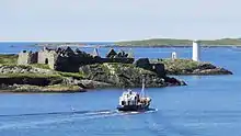 The island belonged to the O'Flahertys until 1380, when the O'Malleys captured it.[3]:23 In the 16th century, according to local tradition, a Spanish pirate or Barbary corsair named Alonzo Bosco built a stronghold on Port Island, where the Cromwellian fort stands today. According to the tales he raided the Irish coast and shipping in the area. "Don" Bosco was supposed to have been an ally of Gráinne O'Malley, chieftain of the O'Malley clan and 'Ireland's pirate queen'. One story had them stretching a defensive iron chain across Inishbofin's harbour entrance to make it impassable to enemy ships. Across the harbour entrance from Port Island sits 'Dún Gráinne', the fort where Gráinne O'Malley supposedly lived.[3]:23,25