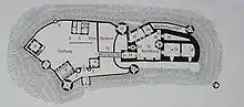 The inner bailey or inner ward of a castle is the strongly fortified enclosure at the heart of a medieval castle.[1] It is protected by the outer ward and, sometimes also a Zwinger, moats, a curtain wall and other outworks. Depending on topography it may also be called an upper bailey or upper ward.