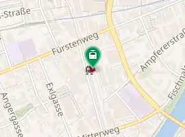 The station lies in Hötting, to the west of the town centre, between Fürstenweg, to which it is connected by a pedestrian path, and Ampfererstraße from which there is car access. Is it geographically the closest rail station to the Innsbruck Airport, from where local bus F travels along Fürstenweg near the station.