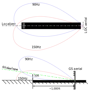 Two signals are transmitted on one of 40 ILS channels. One is modulated at 90 Hz, the other at 150 Hz. These are transmitted from co-located antennas. Each antenna transmits a narrow beam.