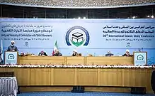 The International Islamic Unity Conference is an international conference which is held every year during the Islamic Unity week in Tehran, Iran, and is organized by “the World Forum for Proximity of Islamic Schools of Thought”. The main target of the conference is devising the ways of unity for Islamic world, and likewise sympathy/consultation between scholars and scientists in order to approach their viewpoints in intended fields. The subjects of its meetings are determined based on divergent issues/problems of Islamic world. The meeting is kicked off with the attendance of many scholars, religious thinkers and prominent figures from diverse countries.[1][2]