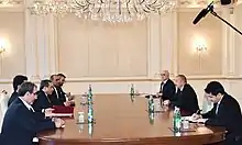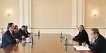 On 10 November 2020, after the reached ceasefire agreement, French Foreign Minister Jean-Yves Le Drian stated that Turkey must accept the terms of the ceasefire concluded by the parties to the Nagorno-Karabakh conflict, otherwise the European Union may impose additional sanctions against the country.[116] On 18 November 2020, the Dutch Parliament adopted a motion calling the government to impose individual sanctions against Azerbaijani President Ilham Aliyev, his relatives, key figures of the Azerbaijani offensive and Syrian militants deployed by Turkey in Nagorno-Karabakh. The deputies approved another resolution, which says that the latest outbreak of violence in Nagorno-Karabakh was initiated by Azerbaijan with the support of Turkey.[117][118] On 19 November 2020, the U.S. New Jersey Senator Bob Menendez demanded United States sanctions on Turkey and Azerbaijan for aggression against Armenia and Artsakh.[119]