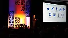 Other examples of large-scale deployments underway include the Sino-Singapore Guangzhou Knowledge City;[70] work on improving air and water quality, reducing noise pollution, and increasing transportation efficiency in San Jose, California;[71] and smart traffic management in western Singapore.[72] Using its RPMA (Random Phase Multiple Access) technology, San Diego-based Ingenu has built a nationwide public network[73] for low-bandwidth data transmissions using the same unlicensed 2.4 gigahertz spectrum as Wi-Fi. Ingenu's "Machine Network" covers more than a third of the US population across 35 major cities including San Diego and Dallas.[74] French company, Sigfox, commenced building an Ultra Narrowband wireless data network in the San Francisco Bay Area in 2014, the first business to achieve such a deployment in the U.S.[75][76] It subsequently announced it would set up a total of 4000 base stations to cover a total of 30 cities in the U.S. by the end of 2016, making it the largest IoT network coverage provider in the country thus far.[77][78] Cisco also participates in smart cities projects. Cisco has started deploying technologies for Smart Wi-Fi, Smart Safety & Security, Smart Lighting, Smart Parking, Smart Transports, Smart Bus Stops, Smart Kiosks, Remote Expert for Government Services (REGS) and Smart Education in the five km area in the city of Vijaywada.[79]