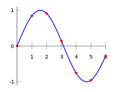 Polynomial interpolation can estimate local maxima and minima that are outside the range of the samples, unlike linear interpolation. For example, the interpolant above has a local maximum at x ≈ 1.566, f(x) ≈ 1.003 and a local minimum at x ≈ 4.708, f(x) ≈ −1.003. However, these maxima and minima may exceed the theoretical range of the function—for example, a function that is always positive may have an interpolant with negative values, and whose inverse therefore contains false vertical asymptotes.