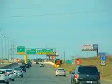 Interstate 235 (I-235) in Oklahoma is also known as the Centennial Expressway or the I-235 Central Expressway. The spur route of Interstate 35 is a 5.4-mile-long north–south alignment in central and north-central Oklahoma City. It connects northbound to U.S. Highway 77 to suburban Edmond and southbound at Interstate 44 on to Interstate 35 and the I-40 Crosstown Expressway near downtown Oklahoma City. U.S. Highway 77 is concurrent with I-235 for the entire route.[5] South of its junction with I-40, I-235 becomes Interstate 35.