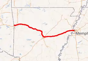 | 284.03 | 457.10 | Hernando de Soto Bridge crossing; Tennessee state line | ||||