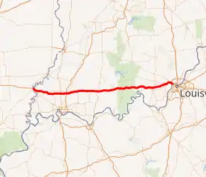 Interstate 64 (I-64) in the U.S. state of Indiana is a major east–west highway providing access between Illinois and Kentucky. It passes through Indiana as part of its connection between the two metropolitan areas of St Louis, Missouri, and Louisville, Kentucky.