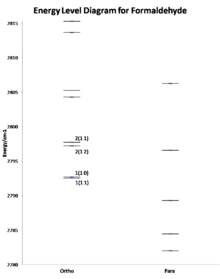 - Determination of the temperature of molecular formation from the ratio of ortho-/para- H2CO. H2CO is a good candidate for this process because of the near zero probability of nuclear spin conversion in gas phase protostar environments.[17]