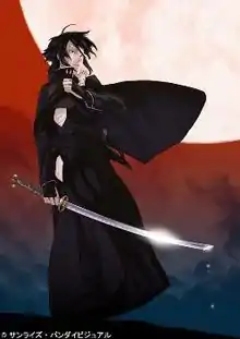 - The seventeen-year-old legendary Eternal Assassin (永遠の刺客, Eien no Shikaku), Yojiro is the bearer of the legendary Moon Tear Sword (月涙刀, Getsuruitō), tasked with the quest of utilizing its blade to destroy the Head of the Conqueror (覇者の首, Hasha no Kubi), a supernatural object said to appear during times of unrest and revolution. He was once a close confidante, friend and bodyguard of the late Ryoma, whose assassination he failed to prevent and which continues to haunt him to the current day. During the midst of his quest to destroy the Head of the Conqueror, he visits Yokohama and happens to meet the Yuyama Troupe, an adventuring kabuki group, and its leader Kakunojo. While in the city, Yojiro senses the aura of the Head of the Conqueror within an auction held in the Shanghai Club, soon breaking through its confines in attempting to cut it in half. However, even if its head appeared to have been cut, the spirit of the elusive Head of the Conqueror was not destroyed and still remains, with Yojiro continuing in his quest to find and destroy it. Occasionally, Yojiro acts as the personal bodyguard to the Yuyama Troupe. He is shown to have some feelings of love for Kakunojo.