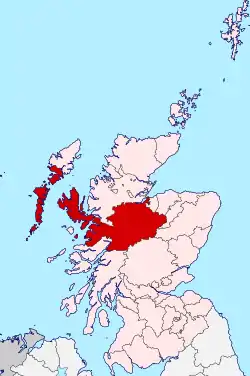 Inverness-shire (Scottish Gaelic: Siorrachd Inbhir Nis) is a historic county, registration county and lieutenancy area of Scotland. Covering much of the Highlands and Outer Hebrides, it is Scotland's largest county, though one of the smallest in population, with 67,733 people or 1.34% of the Scottish population.[1]