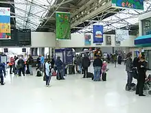 Platform destination LED screens are installed, along with a main departures and arrivals information board. Each of Platforms 1-7 has its own screen showing departures from that platform. Screens are also present behind the wall for all platforms from 3–6. In addition, several other screens are also visible for general information.