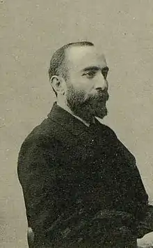 When he was three, Tsereteli's mother died, so he and his siblings were sent to live with two aunts in Kutaisi, while Giorgi moved to Tiflis (now Tbilisi), the administrative centre of the Caucasus, occasionally visiting the children.[5] Tsereteli would later move to Tiflis and attend a gymnasium.[6] While there, he lived with his father who had since married Anastasia Tumanova, an ethnic Armenian. Tsereteli's biographer W.H. Roobol suggests that due to Tsereteli's reserve towards Tumanova, Giorgi's influence over his son declined: "In any event, Giorgi Tsereteli was unable to imbue his son Irakli with his patriotic ideals."[7] Nikoladze's views, which were more cautious against Georgian nationalism, also likely played a part in Tsereteli's shifting ideals.[8] At the gymnasium Tsereteli distanced himself from Christianity, questioning death and its meaning, and was introduced to the writings of the British naturalist and biologist Charles Darwin, which also factored into his move away from religion.[9] He completed his schooling in 1900, the same year as his father's death, and moved to Moscow to study law.[10]