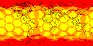 As of mid-2016, Iridium has experienced in-orbit failures which cannot be corrected with in-orbit spare satellites, thus only 64 of the 66 satellites required for seamless global coverage were in operation. Therefore, service interruptions can be observed, especially around the equatorial region where the satellite footprints are most spread out and there is least overlap.[21]