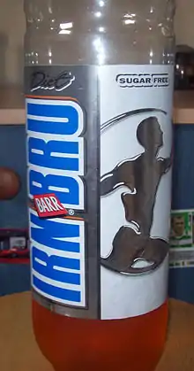 Irn-Bru (/aɪərn bruː/ "iron brew"; Scots: [ˌəirənˈbruː]) is a Scottish carbonated soft drink, often described as "Scotland's other national drink" (after Scotch whisky).[1] It is produced in Westfield, Cumbernauld, North Lanarkshire, by A.G. Barr of Glasgow.