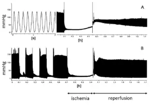 Rather than blocking a coronary artery, similar results have been seen by blocking the brachial artery using a blood pressure cuff prior to surgery.[6] Some research also suggests that ischemic conditioning is also beneficial following a stroke [7][8] or chronic cerebral hypoperfusion [9] or heart attack.[10]