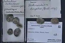 - "国际贝库:花斑锉石鳖" [International shell base: Ischnochiton (Haploplax) comptus] (in Chinese). 台湾贝类资料库. Retrieved 2009-08-11.